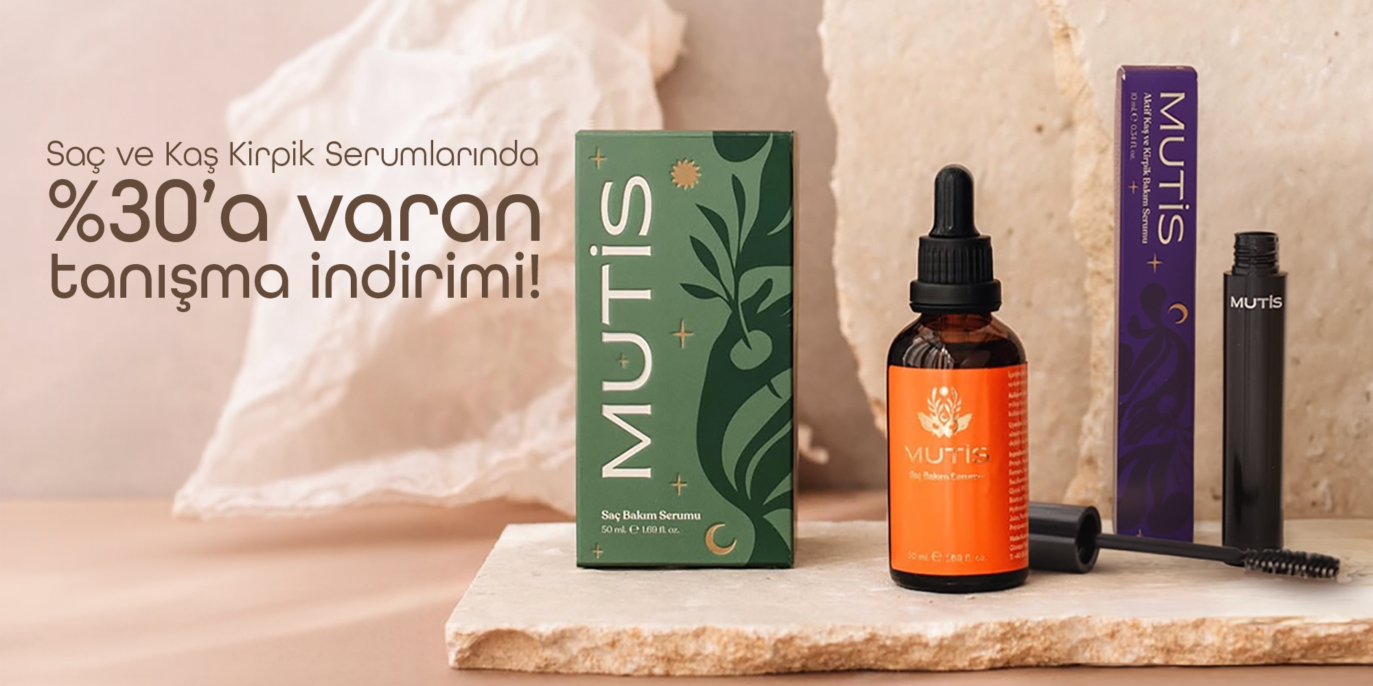 Mutis Aktif Kaş ve Kirpik Bakım Serumu ise aynı içeriğin kaş ve kirpik için özelleştirilmiş formülüne sahiptir.